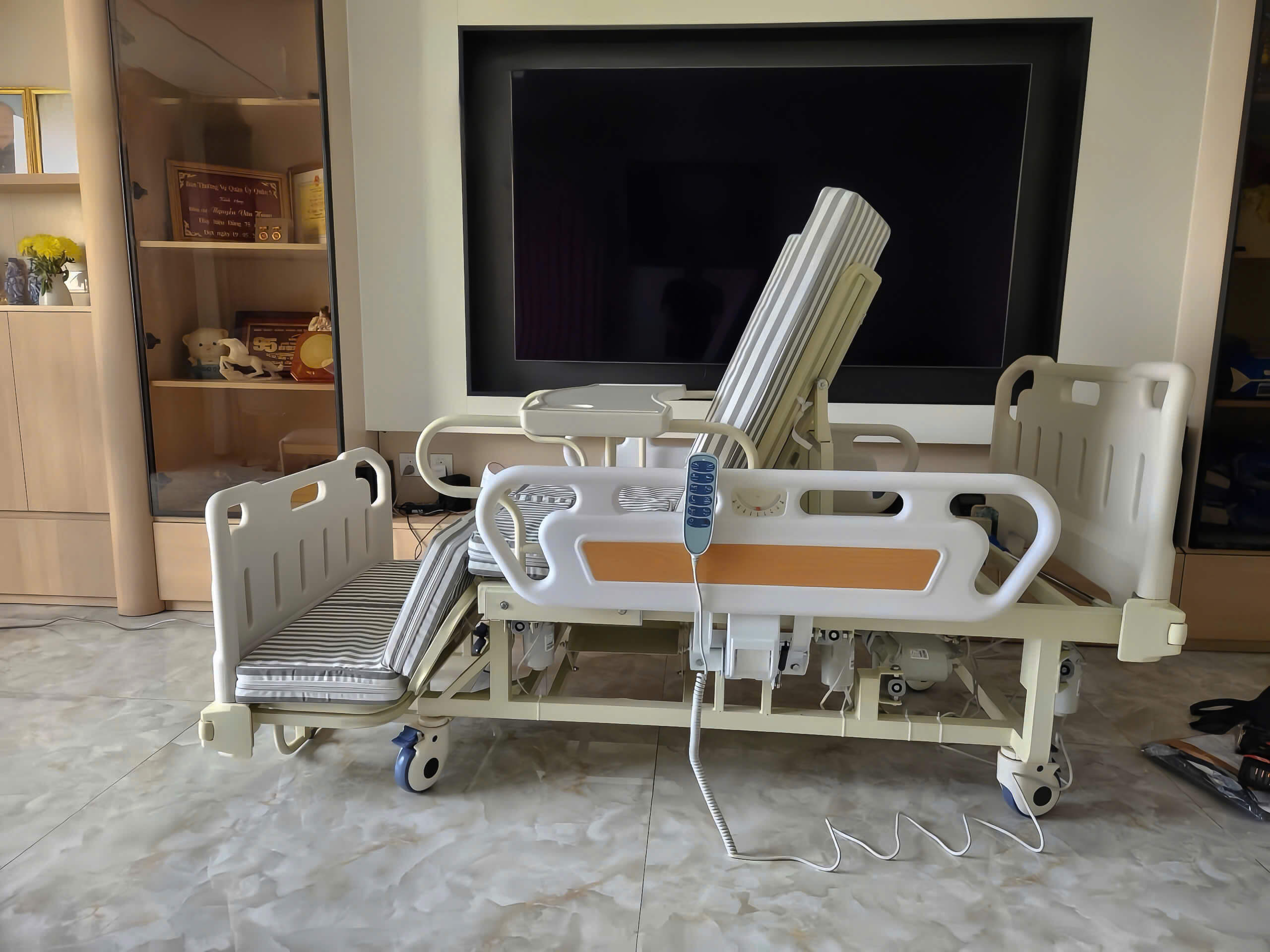 - Bàn ăn tại giường: Bàn ăn đi kèm, có thể lắp/tháo nhanh, hỗ trợ người bệnh ăn uống, đọc sách hoặc sử dụng thiết bị điện tử.