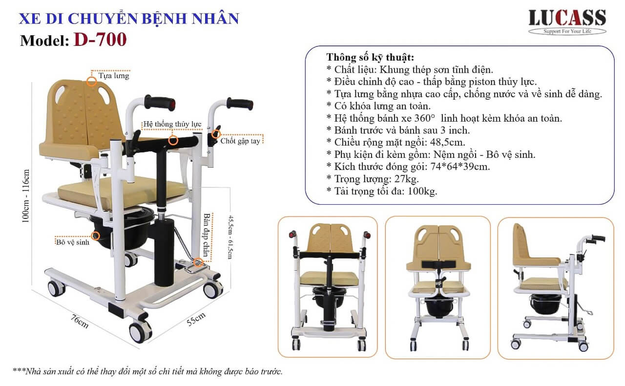 Xe Di Chuyển Bệnh Nhân (Piston) D-700: Giải Pháp Vận Chuyển An Toàn, Tiện Lợi Cho Mọi Gia Đình và Cơ Sở Y TếViệc chăm sóc và di chuyển người bệnh, người cao tuổi hoặc người khuyết tật luôn là một thử thách lớn, đòi hỏi sự cẩn thận và tốn nhiều công sức. Thấu hiểu điều này, chúng tôi giới thiệu Xe Di Chuyển Bệnh Nhân (Piston) D-700 - một thiết bị hỗ trợ đắc lực, mang lại sự thoải mái, an toàn tối đa cho người bệnh và giảm tải đáng kể cho người chăm sóc.
