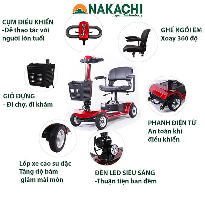 Thương hiệu:Xe điện 4 bánh Nakachi NC-S02 Pro nhập khẩu chính hãng, giá tốt, giao hàng nhanh. Xe điện 4 bánh cho người già, người khuyết tật di chuyển dễ dàng